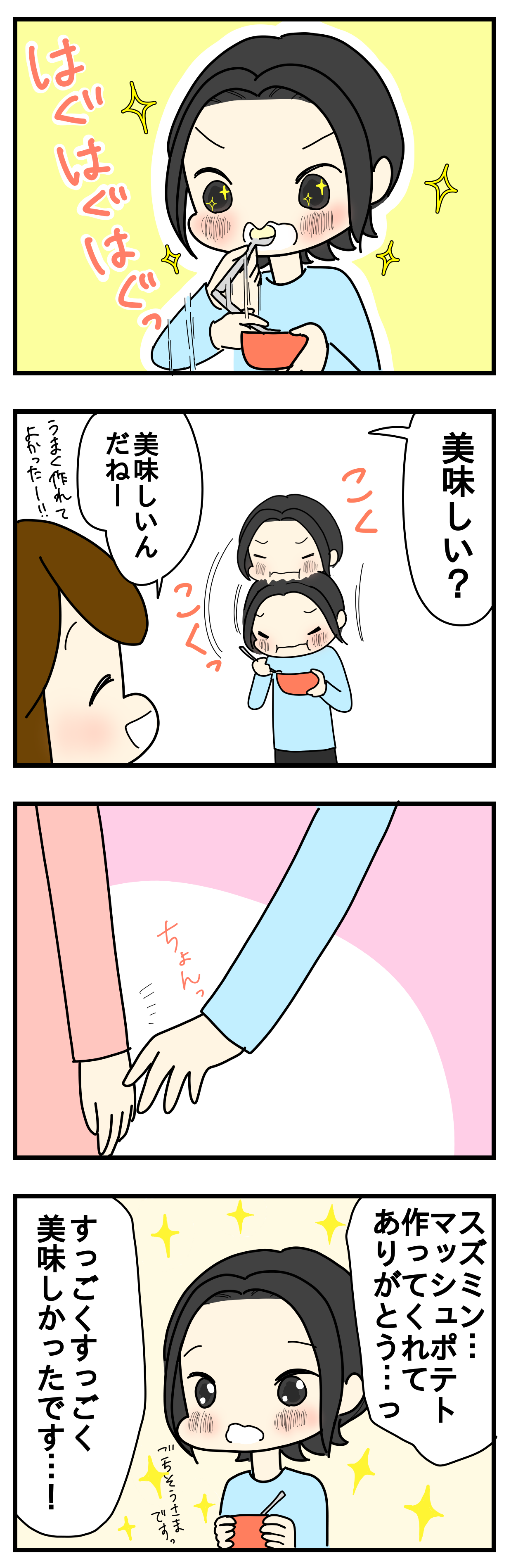 #103 のんちゃんの好物 2018年05月24日 07:15 隠しておいても何故か見つかる 「スズミン&のんちゃんの話」カテゴリの最新記事 < 前の記事 コメント コメント一覧 (5) 1. 如月 2018年05月24日 07:34 ジャガイモの芽には気をつけてくださいね。 2. ぴょんきち 2018年05月24日 07:55 はぁぁああ のんちゃんさんのかわいさが凝縮されててたまんないですね(>O<) そして、好きなもの作ってくれるスズミンさんもたまんないっす 朝からごちそうさまです! 今日も1日がんばれそうです笑 3. えむこ 2018年05月26日 13:04 コミコで更新チェックしたら 無くなってたので慌てましたが こちらで描かれていて安心しました。 今後も更新楽しみにしてます! 4. としえ 2018年06月03日 10:20 以前コミコで拝見していて、今更ながらこちらにお引越しされてることを知りました!より「ありのまま」を描かれるということで、とても嬉しいです。更新分一気読みしました!これからも楽しみにしています^^ 隠していても見つけるのんさんかわいすぎる…(笑) 5. nana 2018年07月26日 11:55 半信半疑だったけど、この前のジュワニュルで10キロ痩せれた! マジ感動!泣きそう(T_T) 毎日鏡見るのが楽しすぎるよ💕 ダイエットで悩んでる方はジュワニュルで検索してみてください。 マジびびりますwww コメントフォーム 名前 コメント 評価する リセット リセット 顔 星 投稿する 情報を記憶